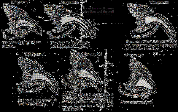 可使用的工具為:寵物趾甲剪、人工挫刀或是電動磨趾甲器。首先要先仔細看狗狗的趾甲,血管前端多長出來的趾甲部份就是要剪掉的,可一小段一小段慢慢地剪,不要一下子剪太短,因為會引起狗兒反感。有時會建議從小在剪趾甲時要剪到有角質層的地方,血管(Vein, Kwik) 的前面,避免血管越生越長(詳見下圖),未來長大就不易剪到有血管的地方。